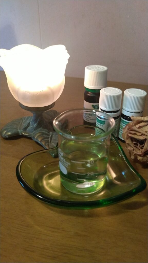 そして20㎝∼30㎝ぐらい離して香りを感じてみるなら、精油のスピリチュアルな作用を感じることができます。30㎝よりも遠く離して、テーブルや机の上に置いて、感じてみるのもいいでしょう。